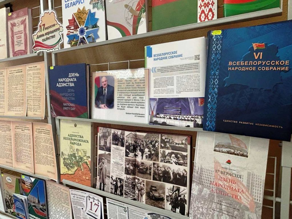В отделе обслуживания детей городской центральной библиотеки им. А. Макаёнка организована выставка «Беларусь. Радзіма. Адзінства»,  приуроченная к Дню народного единства. Разделы выставки отражают информацию о том периоде, когда территория Беларуси вновь обрела целостность, вернулась в русло вековой исторической традиции. Кроме книг и периодических изданий на выставке представлены и копии архивных официальных документов, датируемых сентябрем 1939 года.