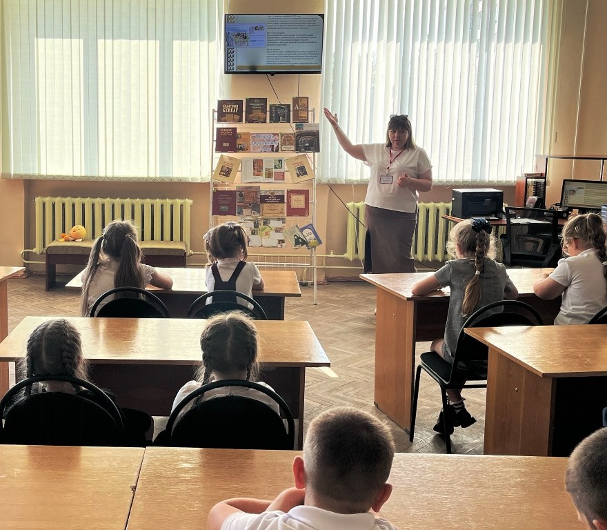 5 сентября в библиотеке № 7 состоялся познавательный час «Загадки белорусской письменности». Учащиеся 2 «А» класса средней школы №7 ознакомились с историей белорусской письменности и книгопечатания, узнали о выдающихся белорусских просветителях и традициях празднования Дня белорусской письменности. Выставка «Путь печатного слова» познакомила детей с книгами по истории книгопечатания и новинками белорусской литературы.