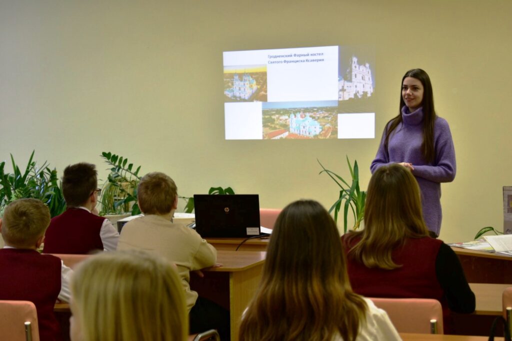 16 ноября в средней школе №37 побывали сотрудники билиотеки №3 и провели час истории, посвященный Фарному костёлу или костёлу Святого Франциска Ксаверия. Учащиеся 6 «Д» класса совершили заочное интерактивное путешествие в католический кафедральный костёл Святого Франциска Ксаверия (Фарный костёл). Это один из самых известных и богато декорированных храмов Беларуси. Посмотрели видео, подготовленное библиотекарями, и ответили на вопросы викторины об известном гродненском культовом здании.