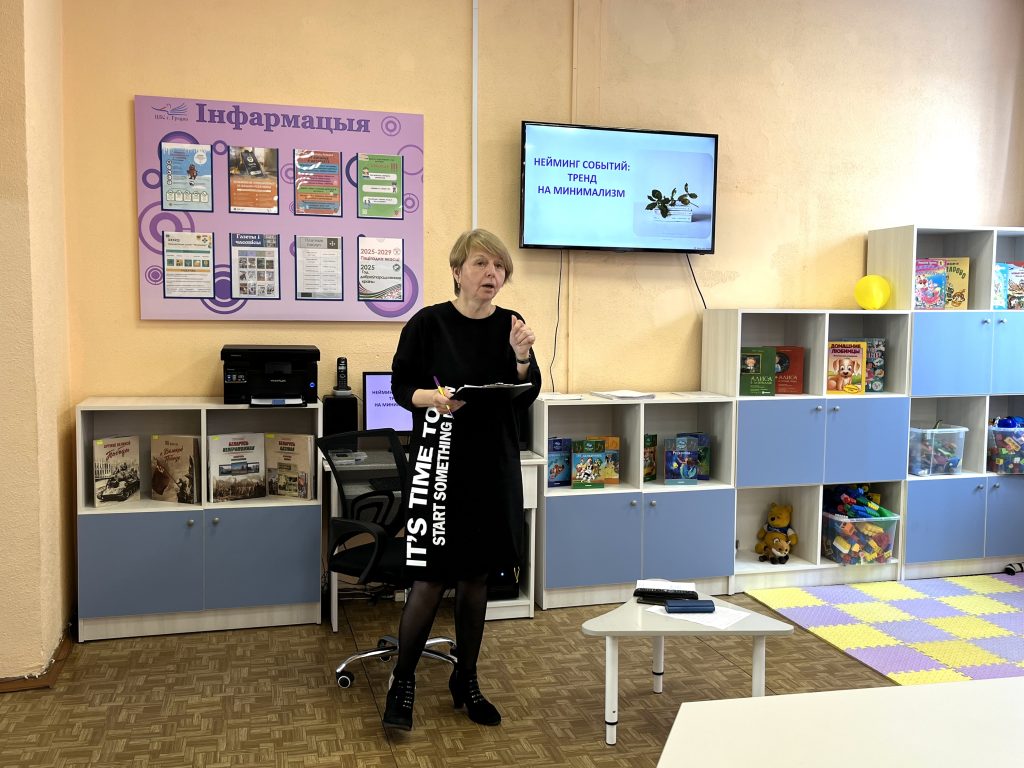 15 апреля состоялись занятия школы учебы «ПрофиКласс» «Нейминг событий: тренд на минимализм» для сотрудников городских библиотек. Сотрудники отдела маркетинга ГЦБ им. А. Макаёнка рассказали о принципах генерации названий для книжных выставок и библиотечных мероприятий. Рассмотрели основные требования к неймингу, такие как лаконичность, оригинальность и простота. Остановились на информационном стиле, используемом при редактирования текстов. Рассмотрели примеры неудачных библиотечных названий. Сгененировали свои варианты. Получили рекомендации по созданию актуальных названий библиотечных мероприятий.