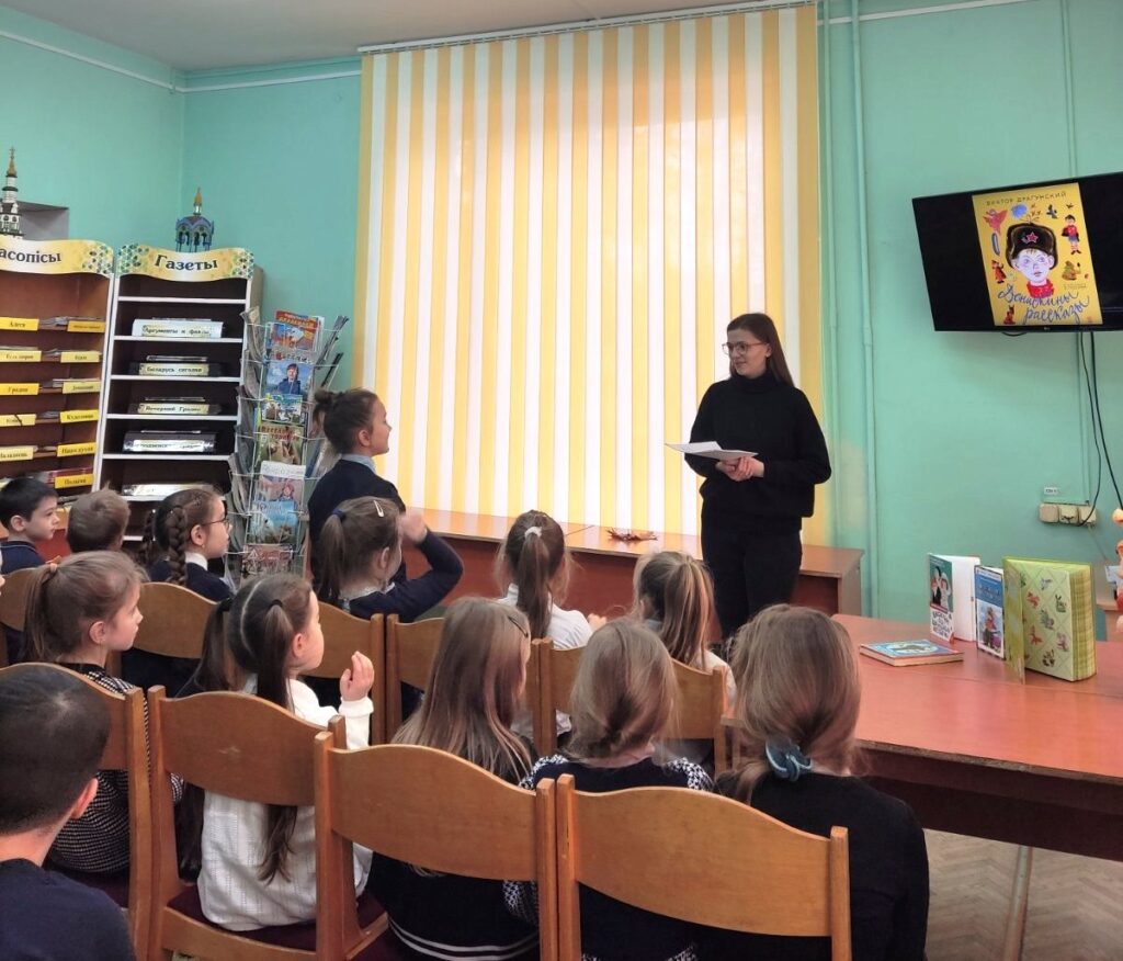 А учащимся 2 «Г» класса СШ №18 почитали вслух «Денискины рассказы». Рассказали об их авторе – Викторе Драгунском, посвятившем всю свою жизнь детям, который в своих рассказах постарался внести добро и хорошее настроение. Его истории о Дениске очень поучительные и совсем невымышленные, а взяты из жизни его родного сына Дениса. Для прочтения были выбраны рассказы: «Профессор кислых щей», «Друг детства», «Тайное становится явным» с дальнейшим обсуждением прочитанного. Дети приняли участие в викторине «Что я люблю и что я не люблю?». В завершение посмотрели отрывок из фильма «По секрету всему свету».