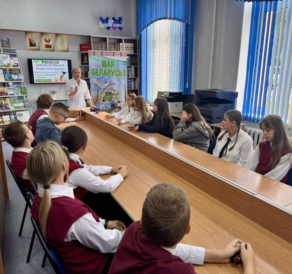 22 сентября в Гродненской городской центральной библиотеке им. А. Макаёнка прошёл экологический час «Улица без гудка». Библиотекари познакомили учащихся 7-го класса средней школы №6  им. Г.А. Горновых с историей Всемирного дня без автомобиля, рассказали о вреде транспортных выхлопов для окружающей природы и для здоровья граждан.  Школьники поучаствовали в конкурсах и викторинах, посмотрели видеоролик «День без автомобиля», познакомились с материалами книжной выставки «Беларусь за чистый воздух».